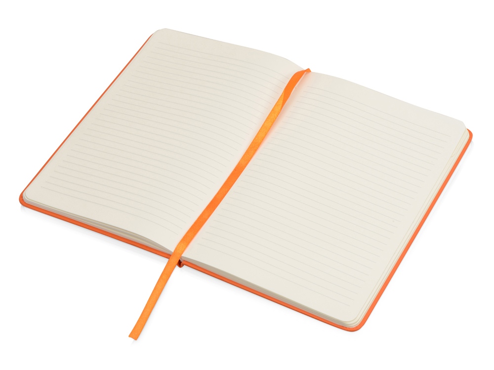 Блокнот формата А5 в твердой обложке со скруглёнными углами и блоком в линейку на 80 листов. Благодаря скрытой магнитной ленте на блокноте можно легко и надежно закрепить металлическую ручку. Зона с магнитом обозначена тиснением в форме ручки.