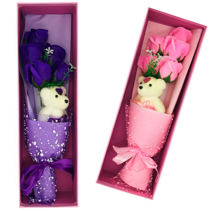 Купить букет из мыльных роз с мишкой в интернет-магазине в Омске