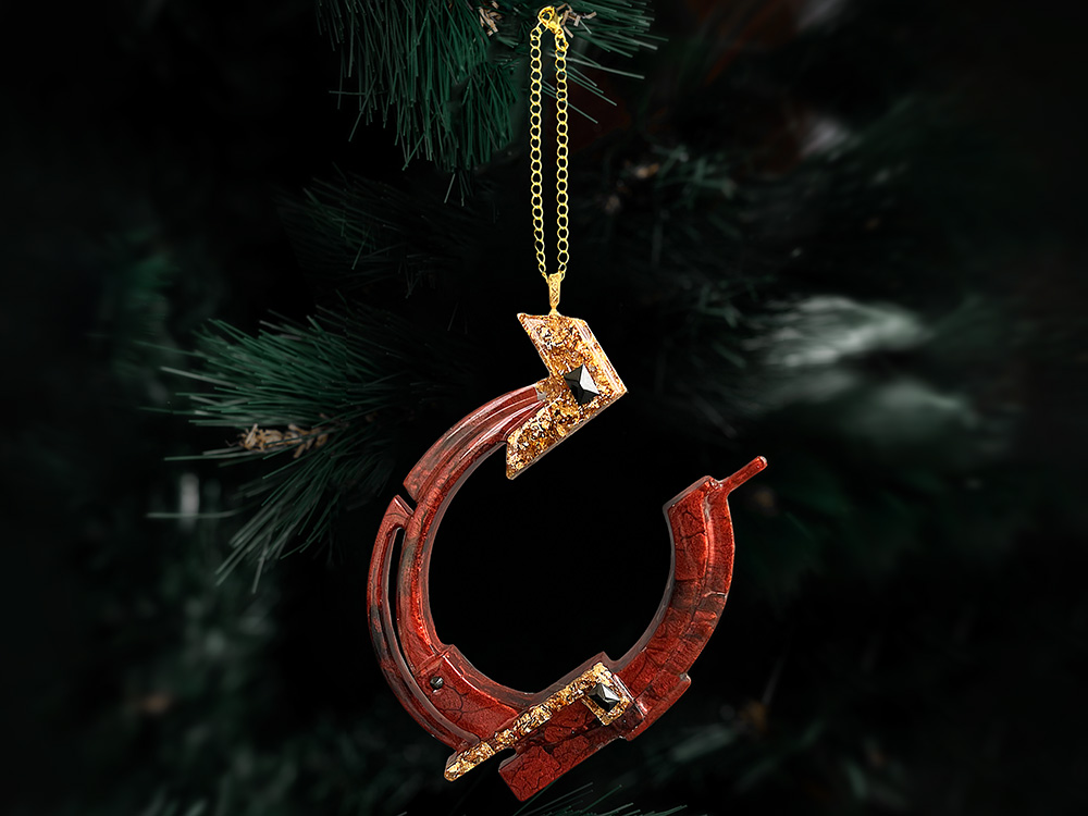 Классический символ удачи, оформленный с современной элегантностью. Игрушка бережно упакована в картонную коробку с внутренним вкладышем, который надежно фиксирует её внутри. Для вашего удобства к игрушке прилагается цепочка или ленточка, с помощью которой вы легко сможете подвесить её на ёлку.