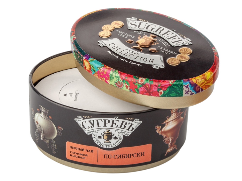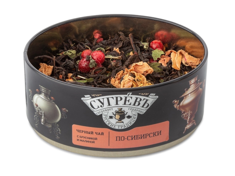 Ж/б По-сибирски + монпансье малиновые. Чёрный чай с травами. купить оптом и в розницу с нанесением логотипа в Омске