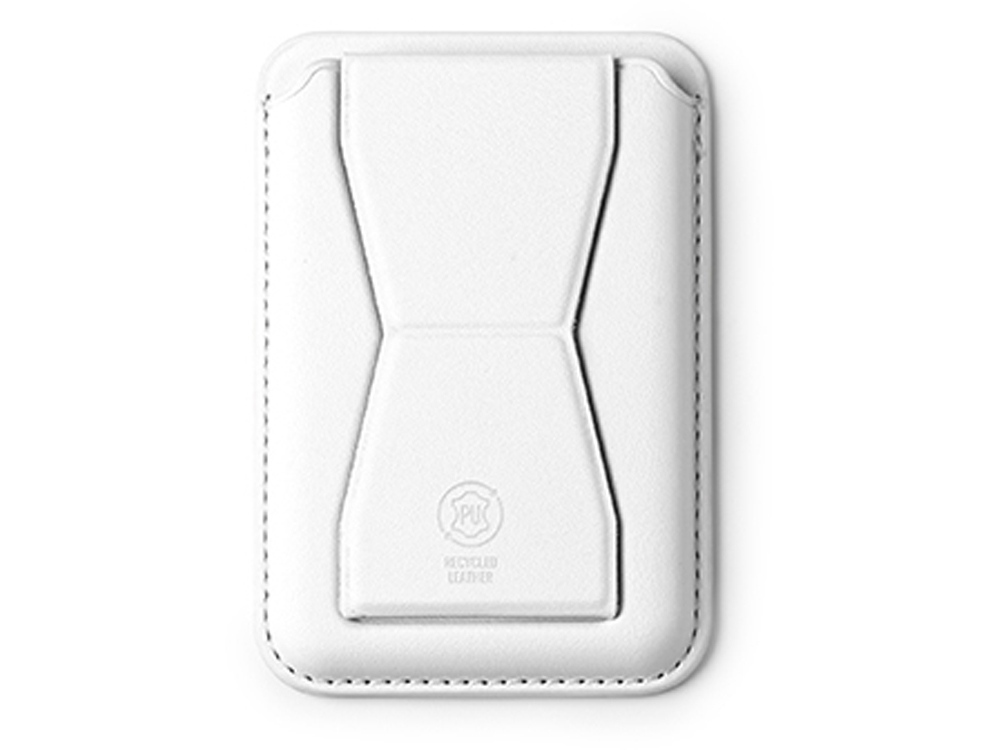Картхолдер со складной подставкой из переработанного полиуретана. Картхолдер имеет минималистичный и современный внешний вид, который идеально дополнит любой смартфон. Складная подставка обеспечит вам удобство при просмотре видео, видео-звонках или чтении. При помощи специальной липкой фактуры, которая находится под защитной бумагой, картхолдер надежно приклеивается к вашему телефону. Не нужно беспокоиться о соскальзывании или повреждении — он будет оставаться на месте!