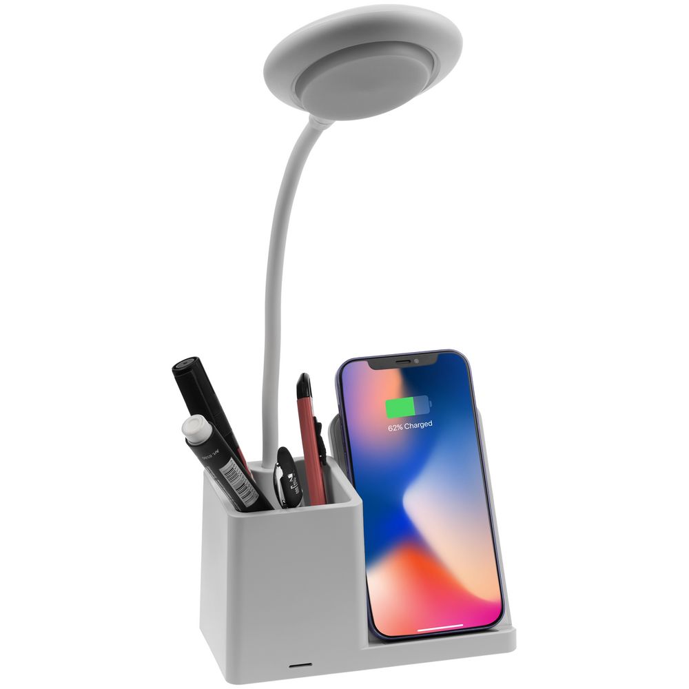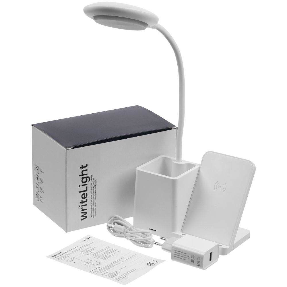 Лампа с органайзером и беспроводной зарядкой writeLight, ver. 2, белая купить оптом и в розницу с нанесением логотипа в Омске