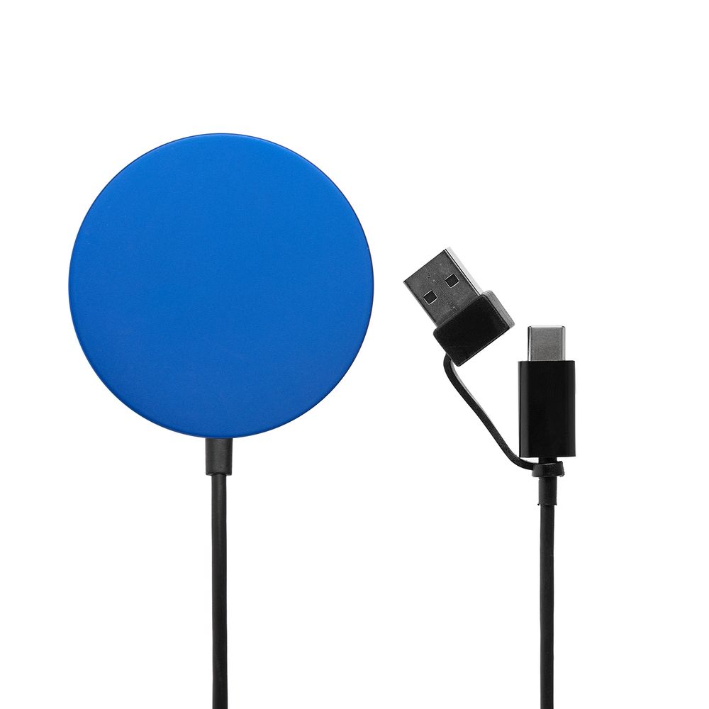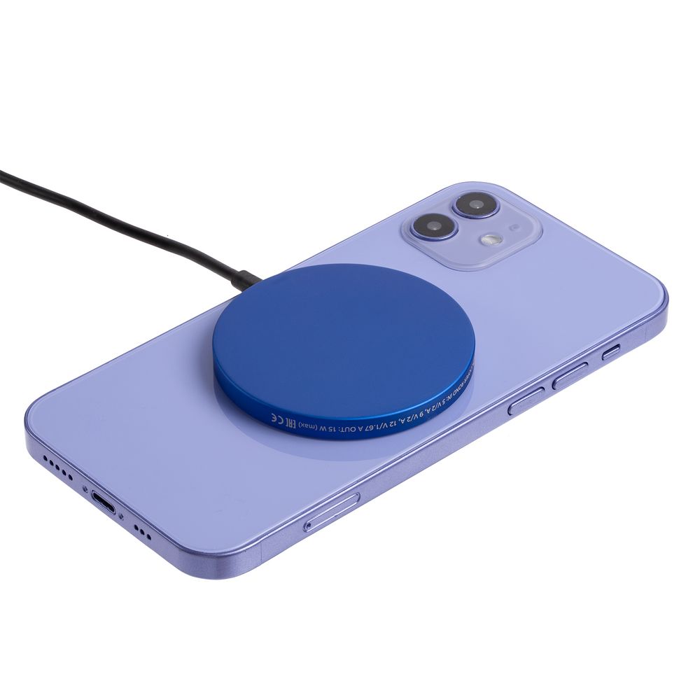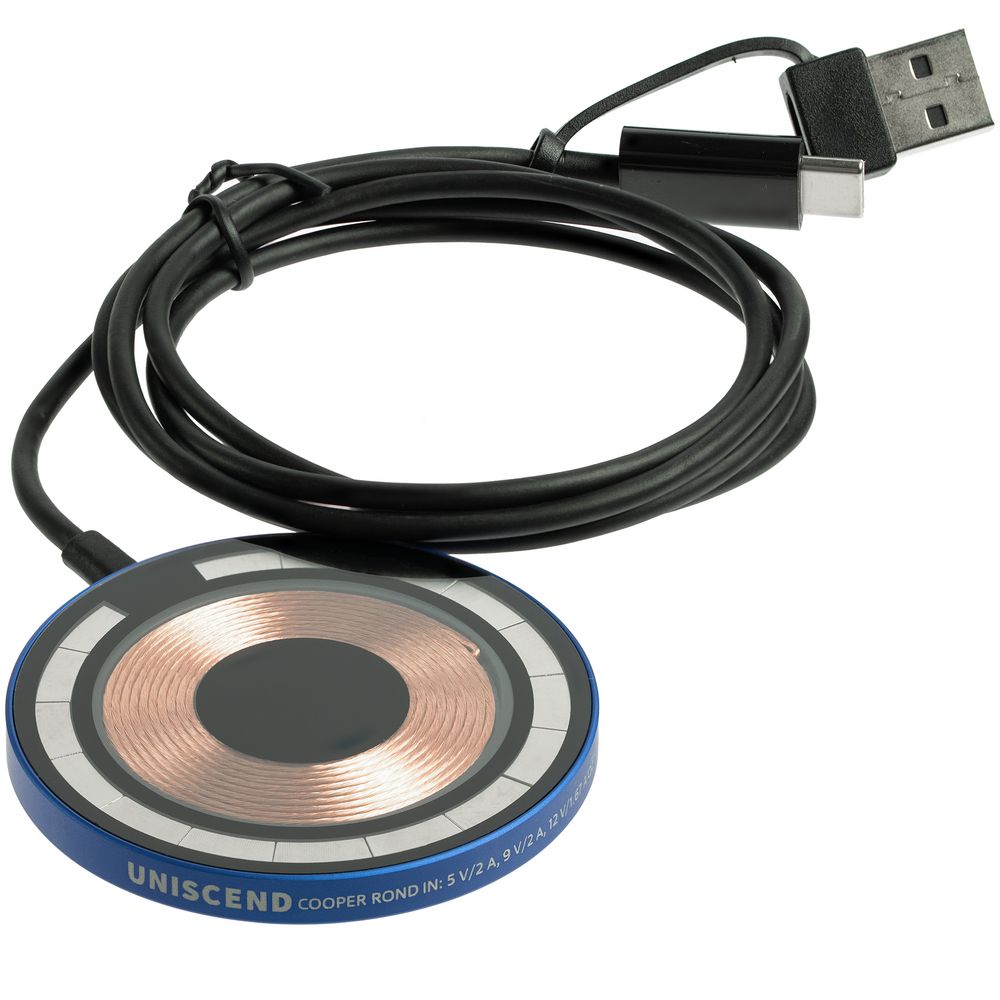 Магнитное зарядное устройство Cooper Rond, 15 Вт, синее купить оптом и в розницу с нанесением логотипа в Омске