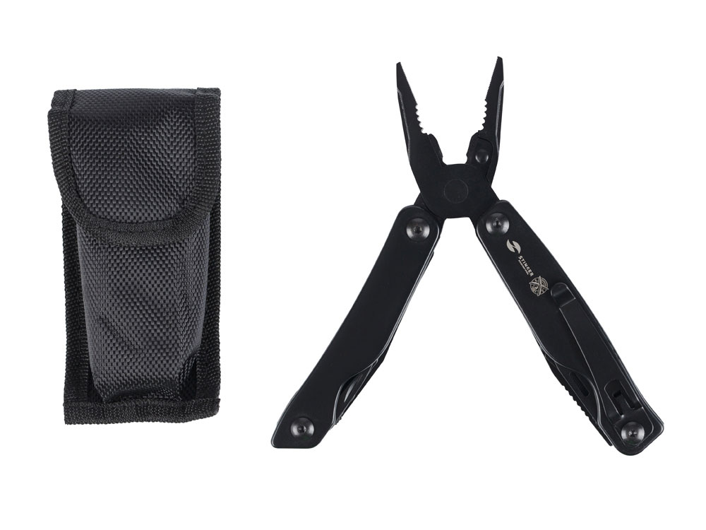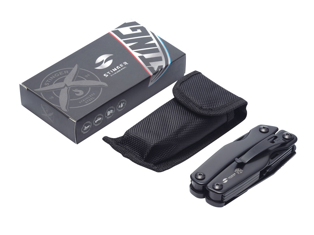 МНОГОФУНКЦИОНАЛЬНЫЙ ИНСТРУМЕНТ STINGER С НАБОРОМ ИЗ 11 ФУНКЦИЙ: 1. Острогубцы 2. Пассатижи 3. Кусачки 4. Кусачки для твёрдой проволоки 5. Лезвие 73 мм 6. Пила по дереву и металлу 7. Отвёртка крестовая 8. Отвёртка шлицевая большая 9. Напильник по дереву и металлу 10. Открывалка для бутылок 11. Шило ХАРАКТЕРИСТИКИ: Материал инструментов: нержавеющая сталь 3Cr13 Материал рукояти: нержавеющая сталь Длина: 101 мм Ширина: 43 мм Вес: 263 г В комплекте: чехол из синтетического материала Упаковка: складная картонная коробка