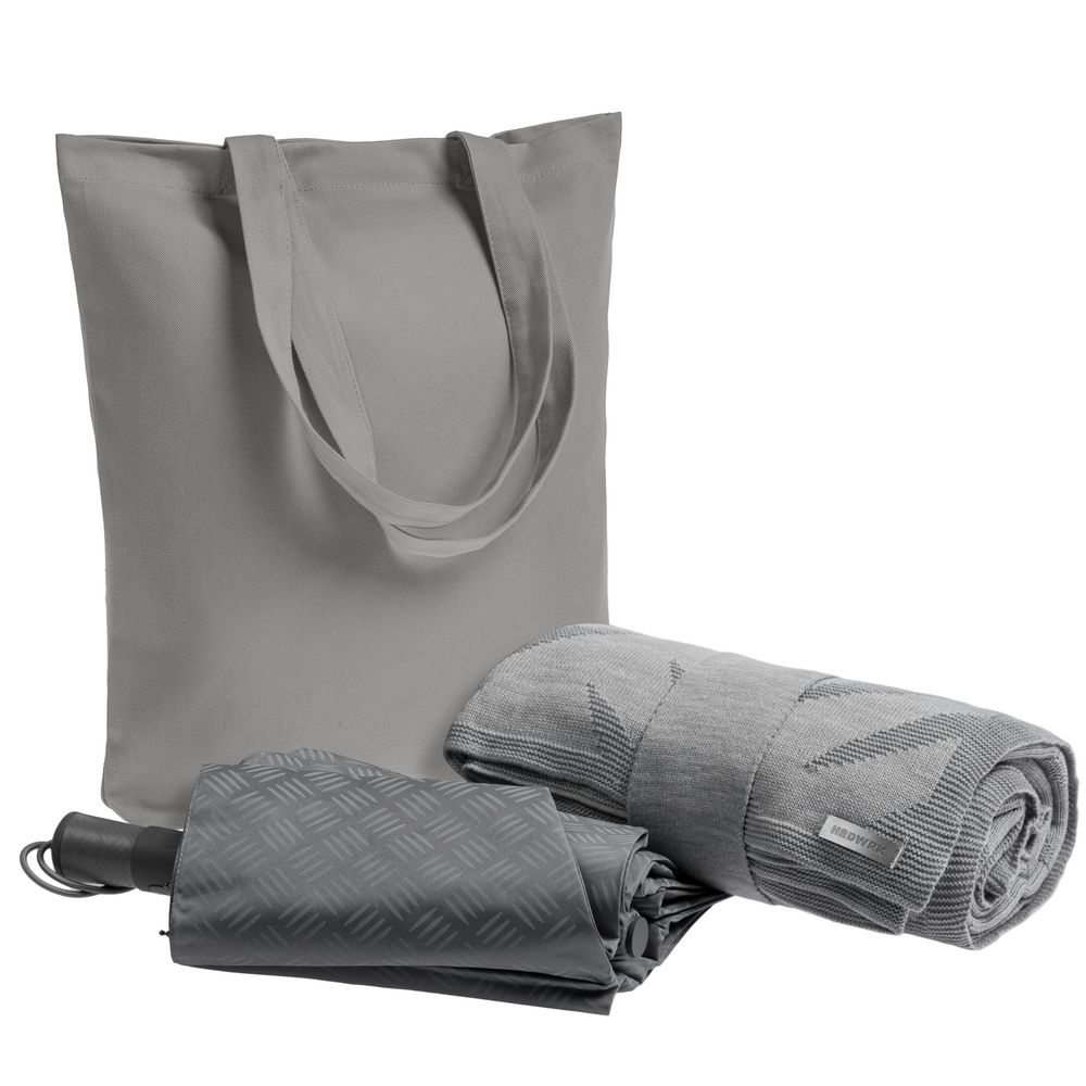 Материал сумка - хлопок 100%, плотность 220 г/м²; саржа; плед - акрил 100%, плотность 347 г/м²; зонт - эпонж 190D, стеклопластик, пластик