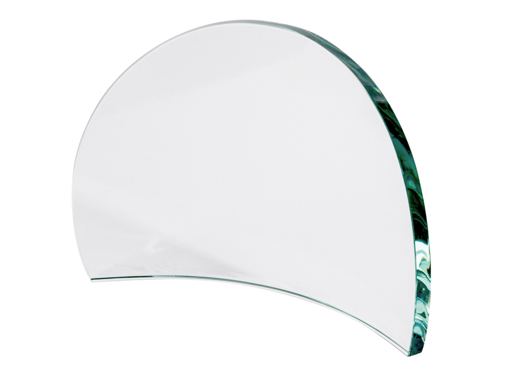 Награда выполнена из прозрачного стекла, не имеет постамента и никаких отвлекающих деталей. Минималистична и лаконична. Благодаря слегка изогнутой поверхности персонализация на ней смотрится панорамно. • Лаконичный дизайн • Прозрачное стекло • Изогнутая поверхность