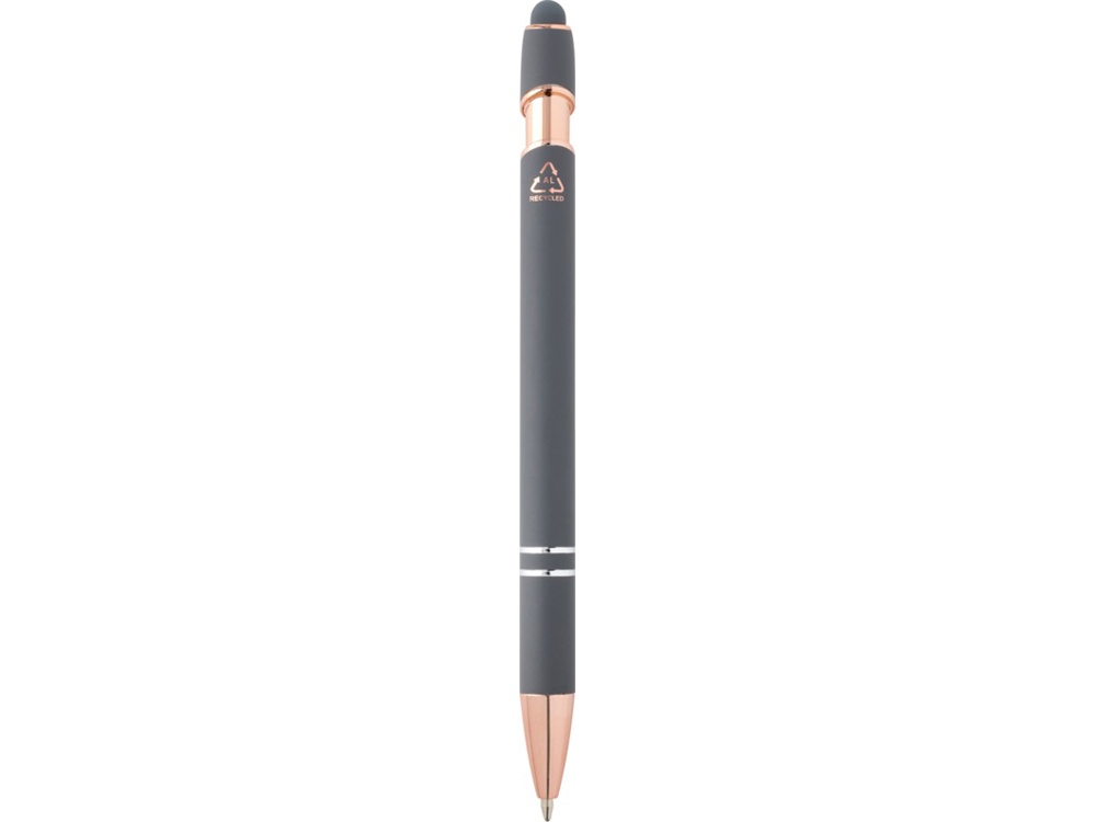 Шариковая ручка Nanna с покрытием из розового золота имеет корпус из переработанного алюминия и сенсорный стилус из силикона. Переработанный алюминий уменьшает количество отходов на свалках и помогает сохранять природные ресурсы для сокращения выбросов парниковых газов. Цвет чернил: черный. Длина непрерывной линии: 800 метров. Размер пера: 1,0 мм. Recycled Aluminium.