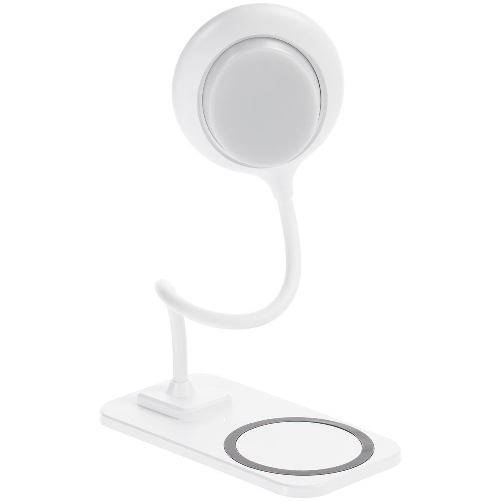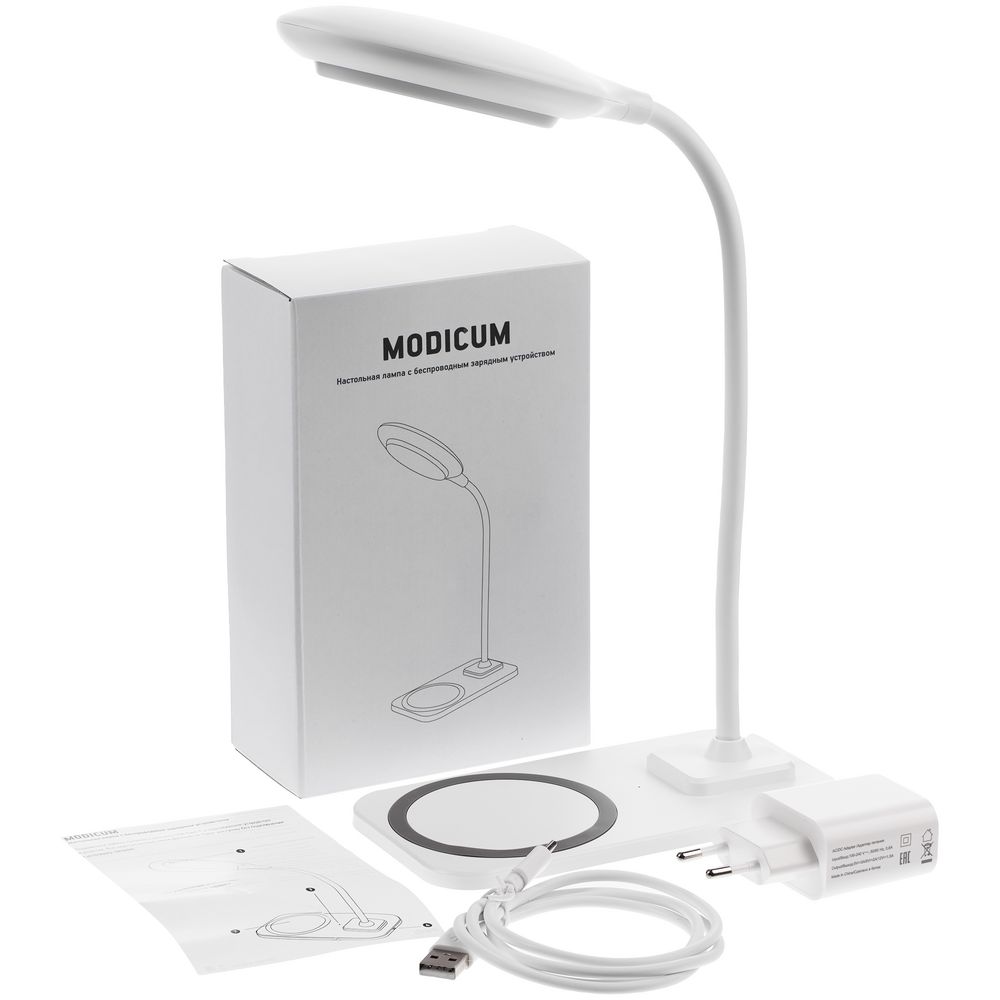 Настольная лампа с беспроводной зарядкой Modicum, белая купить оптом и в розницу с нанесением логотипа в Омске