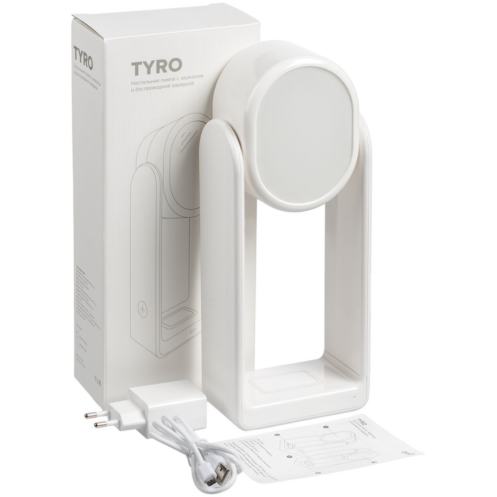 Настольная лампа с зеркалом и беспроводной зарядкой Tyro, белая купить оптом и в розницу с нанесением логотипа в Омске