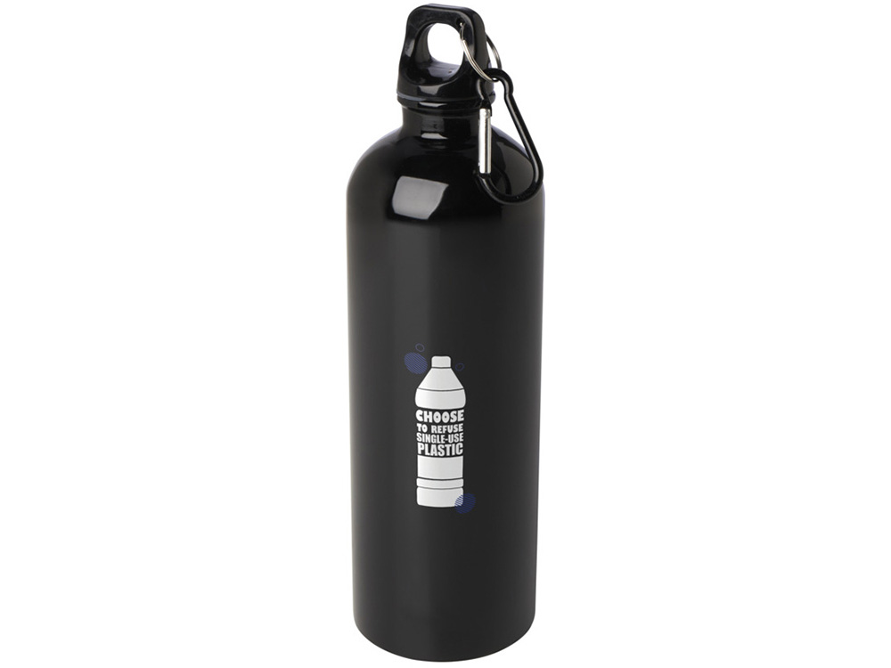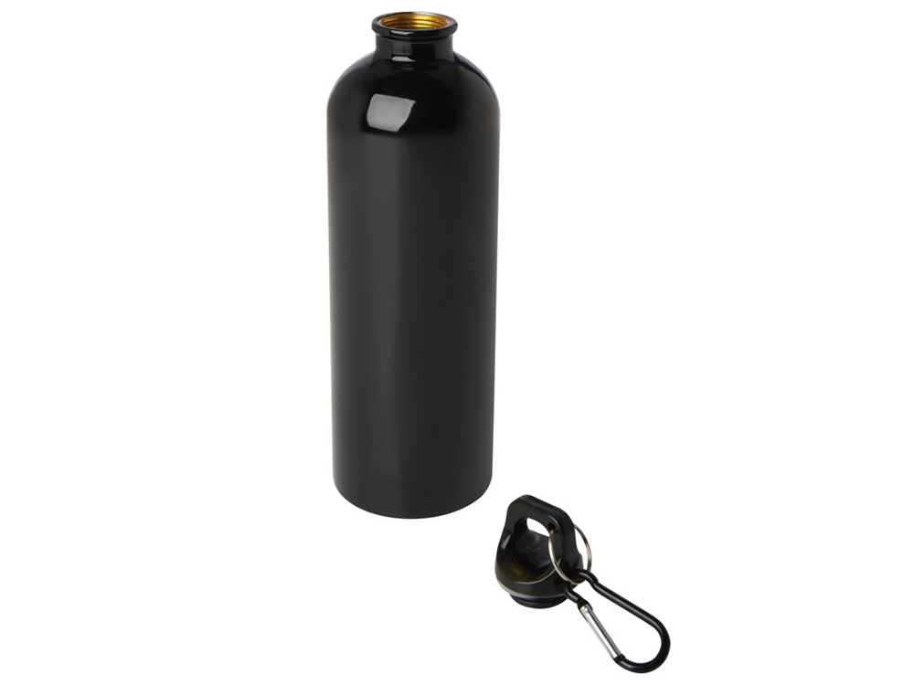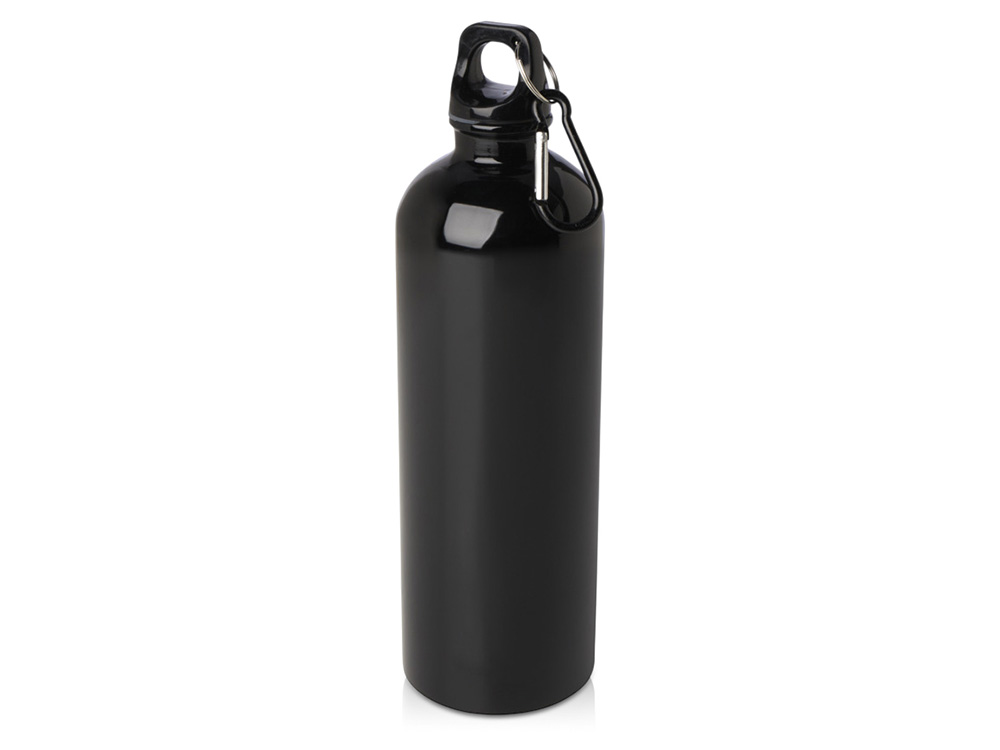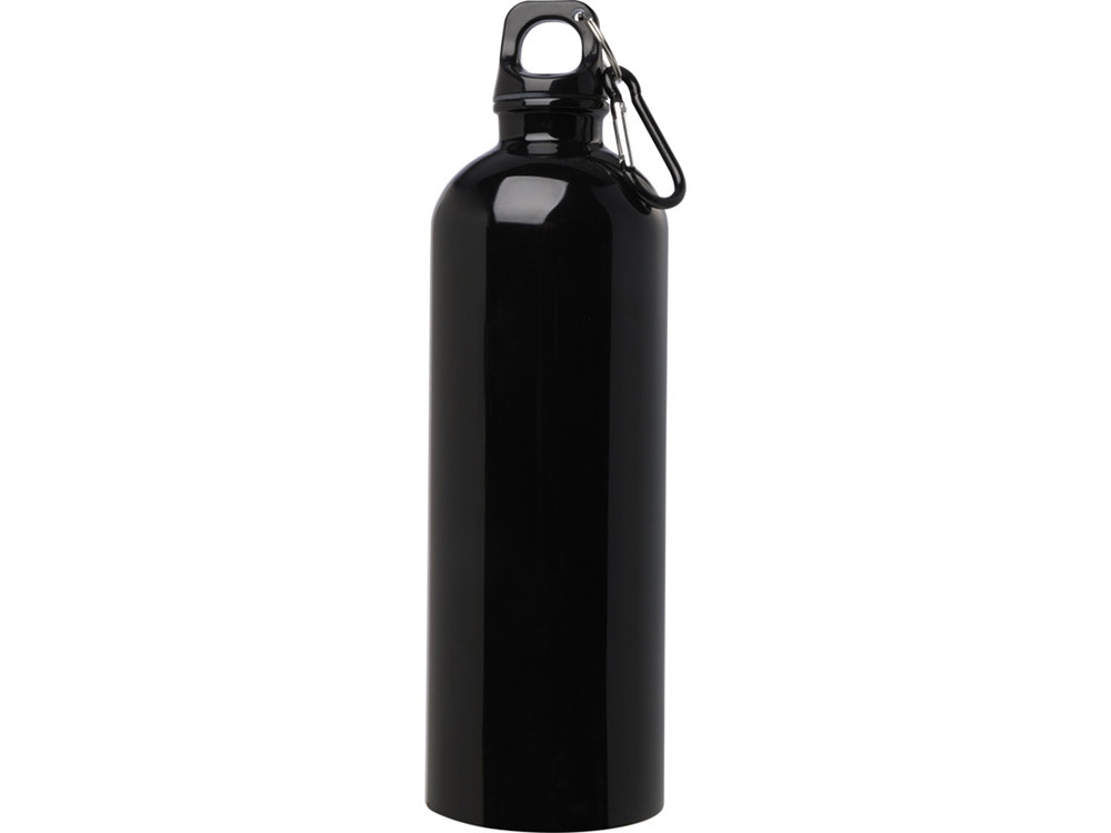 Одностенная бутылка для воды с карабином Oregon, изготовленная из нержавеющей стали, сертифицированной по стандарту RCS, объемом 750 мл - сплошной черный купить оптом и в розницу с нанесением логотипа в Омске