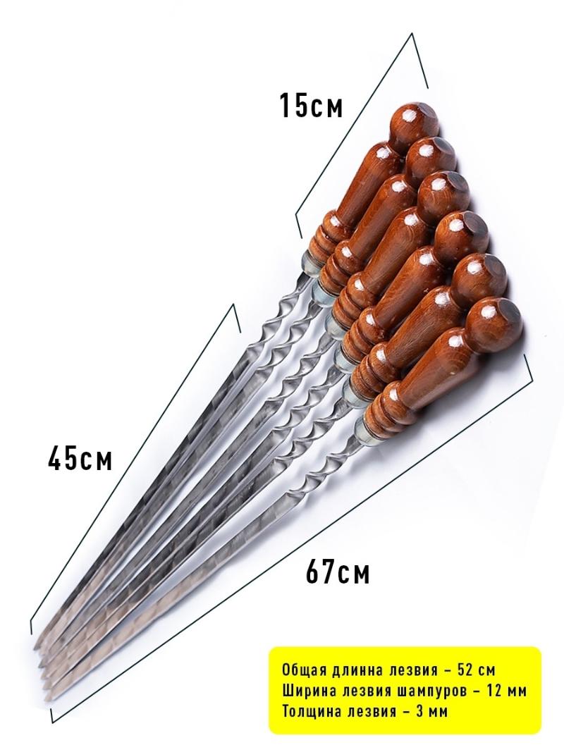 Особенности Шампура выполнены из пищевой нержавеющей стали, ручки из массива дерева