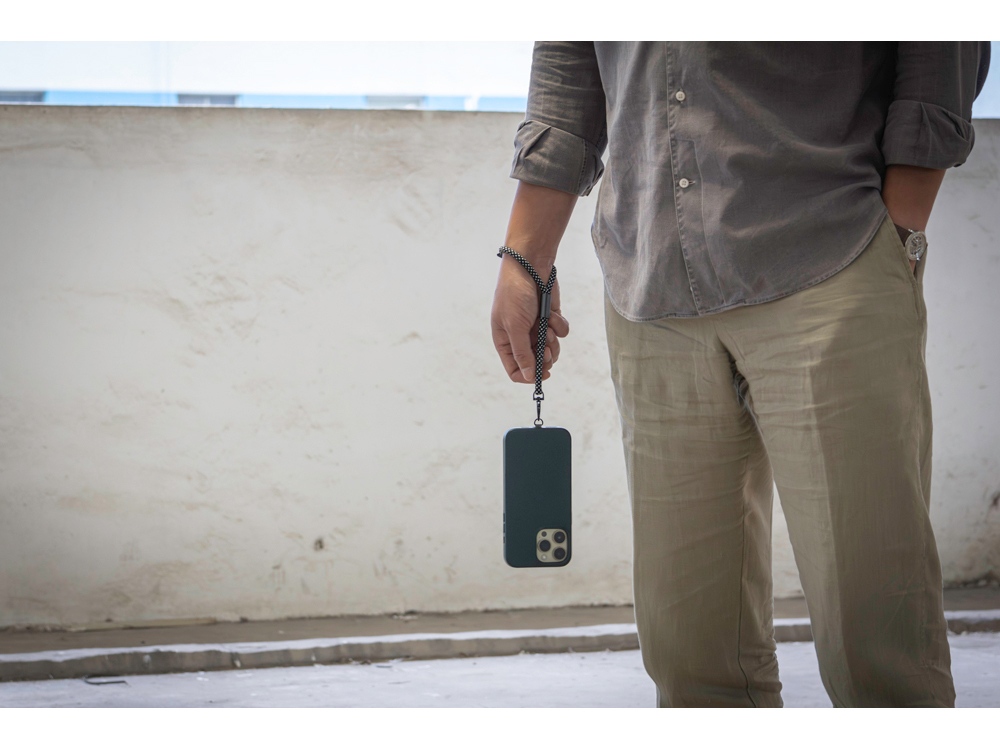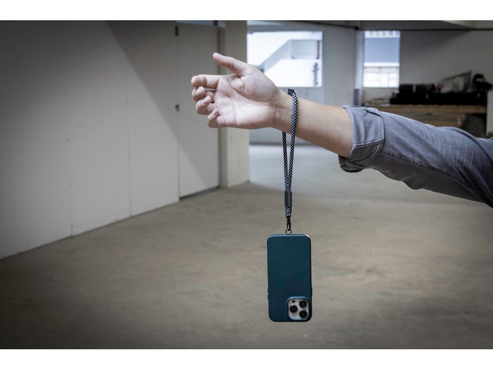 Lany - это корпоративный подарок для каждого, у кого есть телефон! Изготовленный из переработанных ПЭТ-бутылок, чехол Lany превращает ваш собственный чехол для телефона в чехол через плечо и освобождает ваши руки. Адаптер для ремешка для телефона в тонком металлическом корпусе - отличное и надежное решение. Этот умный гаджет всегда должен быть в вашей сумке. Длина ремешка регулируема и составляет до 120 см.