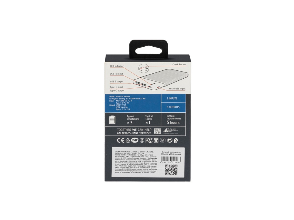 RIVACASE VA2140 (10000 мАч) внешний аккумулятор, черный 12/48
