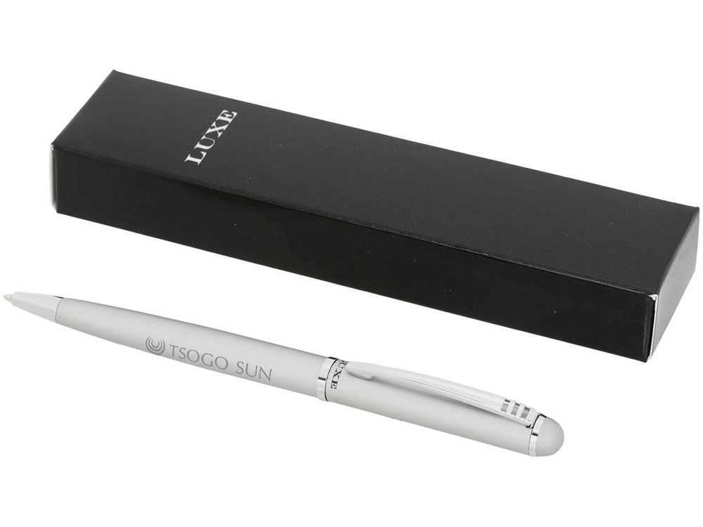 Шариковая ручка. Эксклюзивная поворотная шариковая ручка. Предлагается глянцевый черный, матовый серебряный и матовый синий цвета. Предлагается в подарочной коробке LUXE (16 x 5 x 2,5 см). Металл.