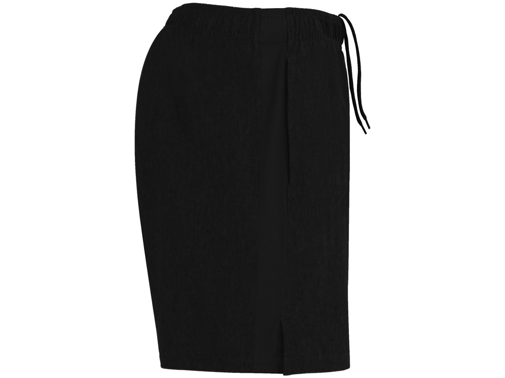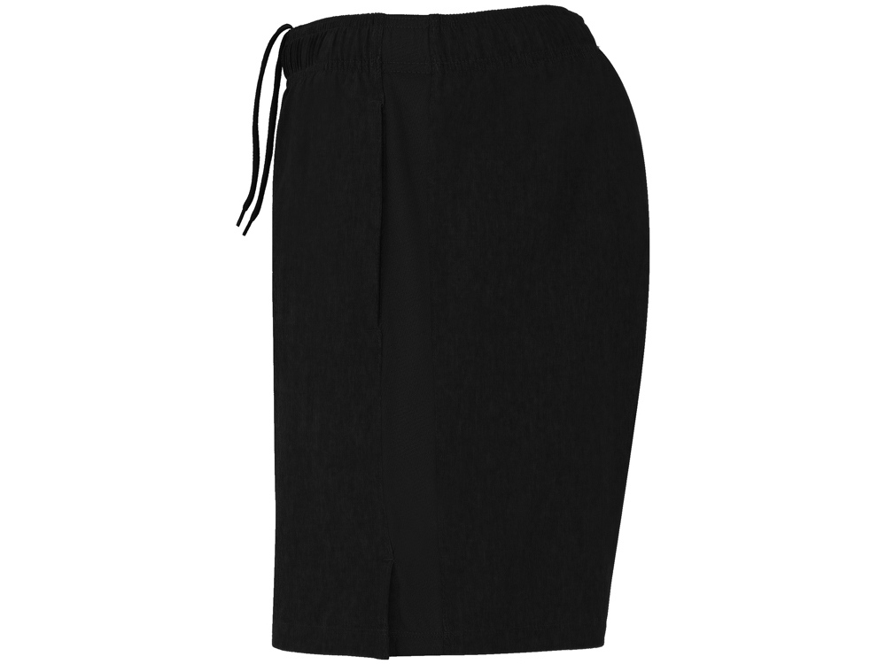 Спортивные шорты из двух видов полотен с подкладкой - трусами. Эластичный пояс с контрастным внутренним шнурком. Лампасы по бокам из дышащей ткани. Два карманы по бокам. Асимметричные боковые разрезы внизу.
