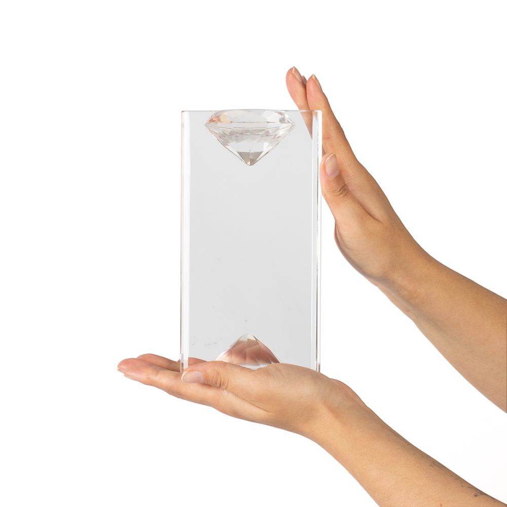 Стела Incrystal — воплощение минимализма, приправленного двумя привлекательными акцентами. Крупные детали в форме эффектных алмазов у основания и в навершии образуют гармоничное единство, олицетворяя сильные стороны, устремленность к единой цели и особую ценность получателя награды. Свет красиво преломляется в гранях этих алмазов, создавая приятный визуальный эффект и добавляя стеле оттенок роскоши.