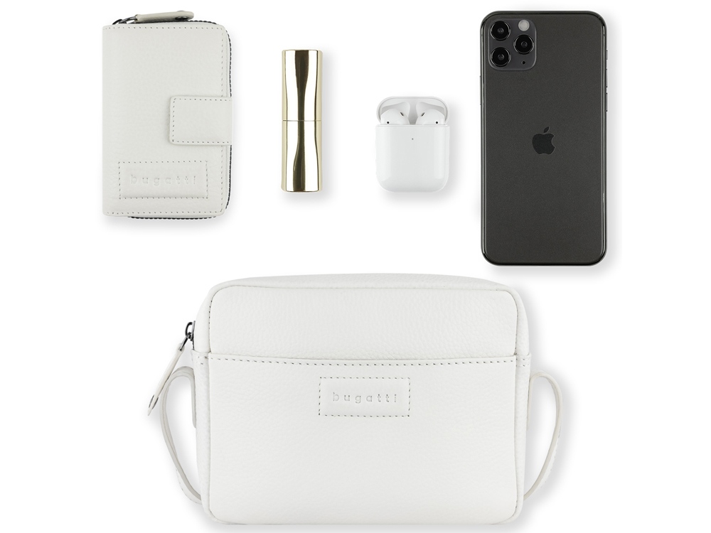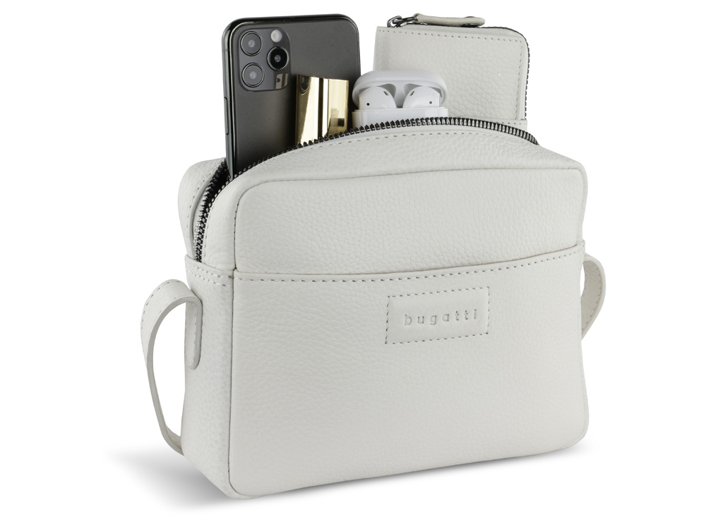 Сумка кросс-боди женская BUGATTI Elsa, белая, воловья кожа/полиэстер, 19х5,5х14 см