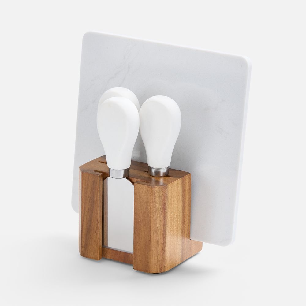 | Материал | доска, рукоятка ножей - мрамор, искусственный; подставка - дерево, акация; лезвия у ножей - нержавеющая сталь, CR13 |