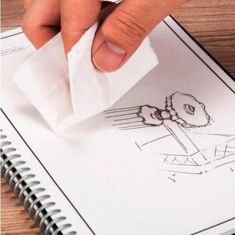• Умный блокнот называют "лучшей тетрадью в мире". Почему же? Во-первых, благодаря специальным чернилам в ручке, что входит в комплект, и материалу листов самого блокнота - все записи можно легко стереть влажной салфеткой и писать заново на чистых листах