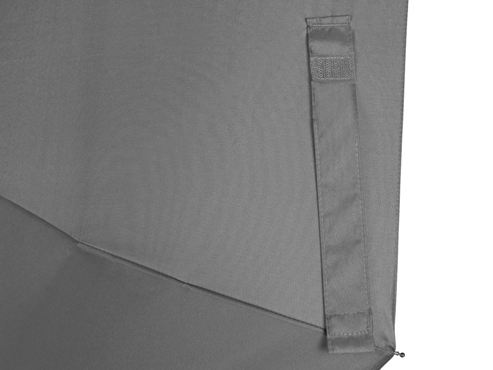 Купол зонта выполнен из переработанного пластика. Гибкие спицы из стекловолокна делают зонт стойким к порывам ветра. Удобная ручка софт тач. Фиксирующая купол застежка на липучке шириной 3 см - дополнительная опция для нанесения вашего логотипа.