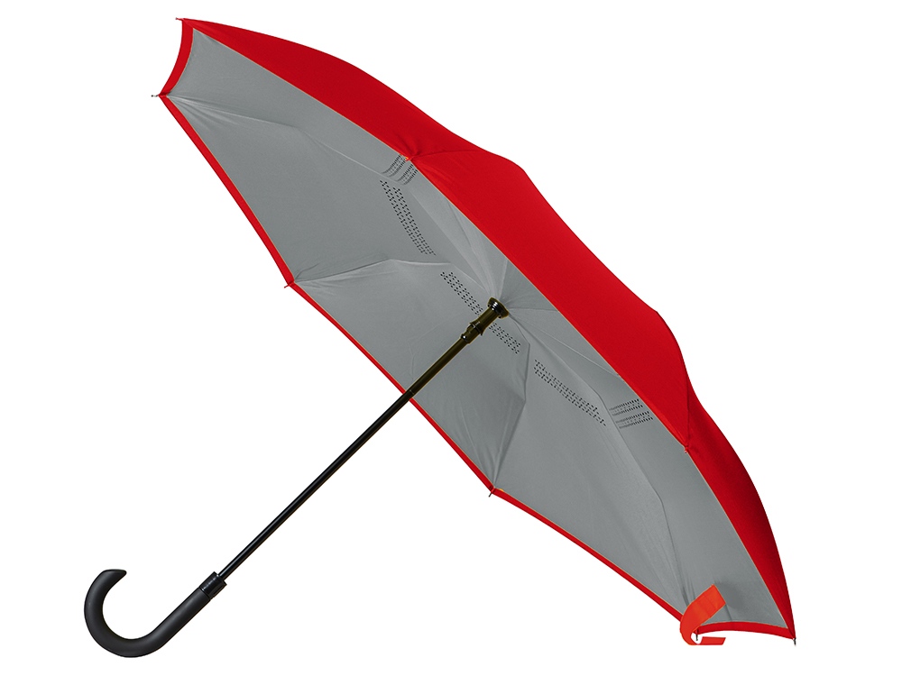 Зонт-трость наоборот Inversa, полуавтомат, красный/серый купить оптом и в розницу с нанесением логотипа в Омске